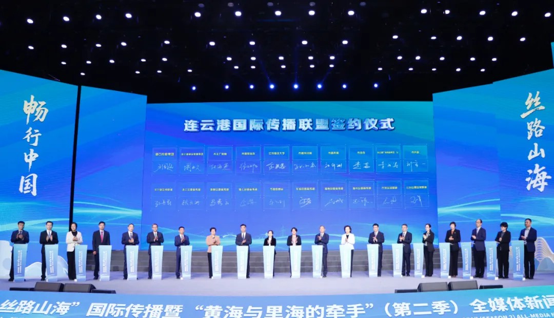 徐圩新区、连云港港口控股集团、赣榆区、江苏汤沟酒业、连云港广电传媒集团作了主旨推介;举行了“一带一路”国际传播协作体、连云港国际传播联盟、“国际传播人工智能工作坊”签约及揭牌仪式;视频发布了《相约神奇浪漫之都——连云港国际形象短视频创作征集活动》;为“黄海与里海的牵手”(第二季)全媒体新闻行动采访记者代表授旗;颁发了《畅行中国媒介品牌授权牌》。