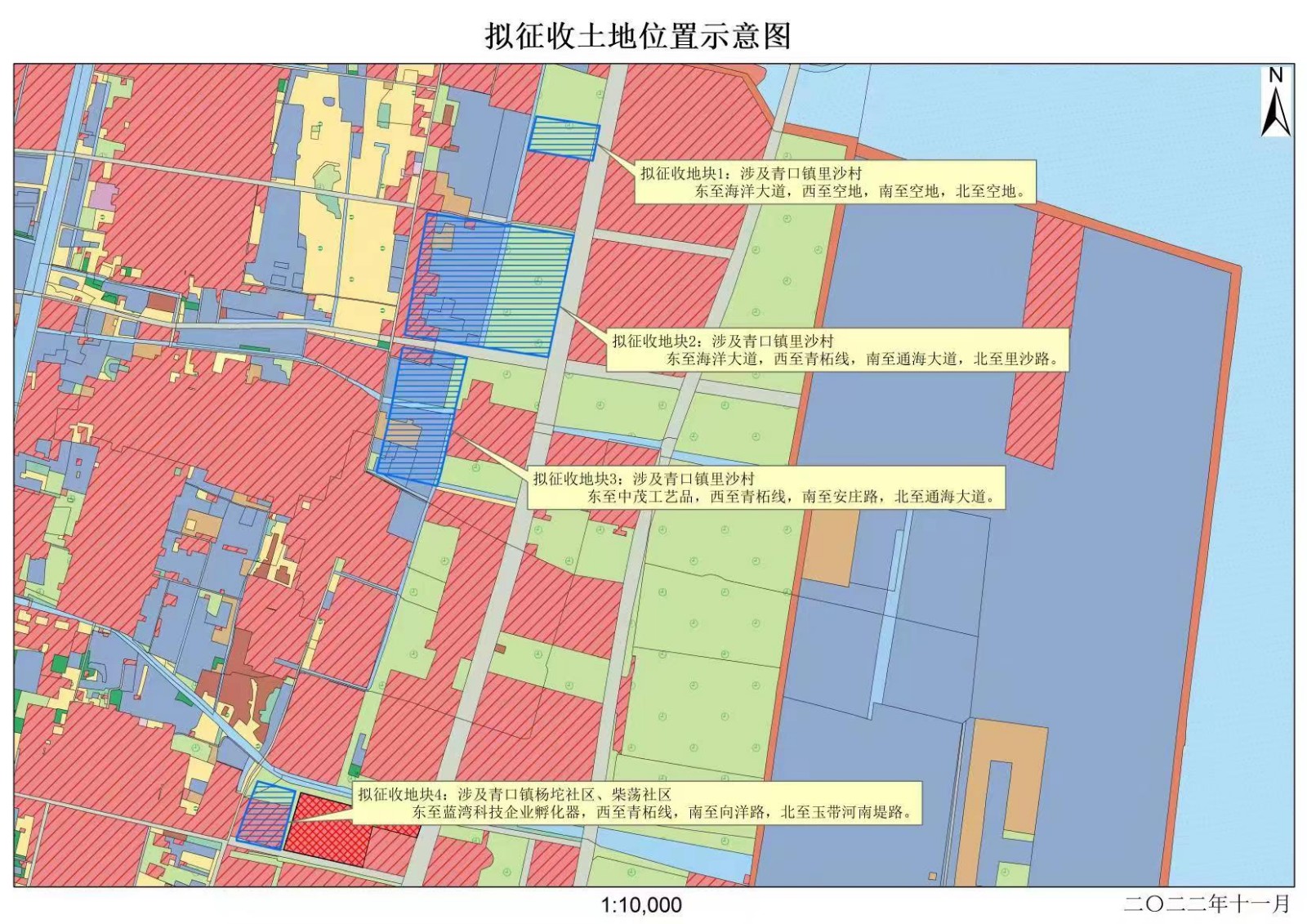 本次拟征收土地位于青口镇里沙村、杨坨社区和柴荡社区范围内。拟征收土地位置详见附图。